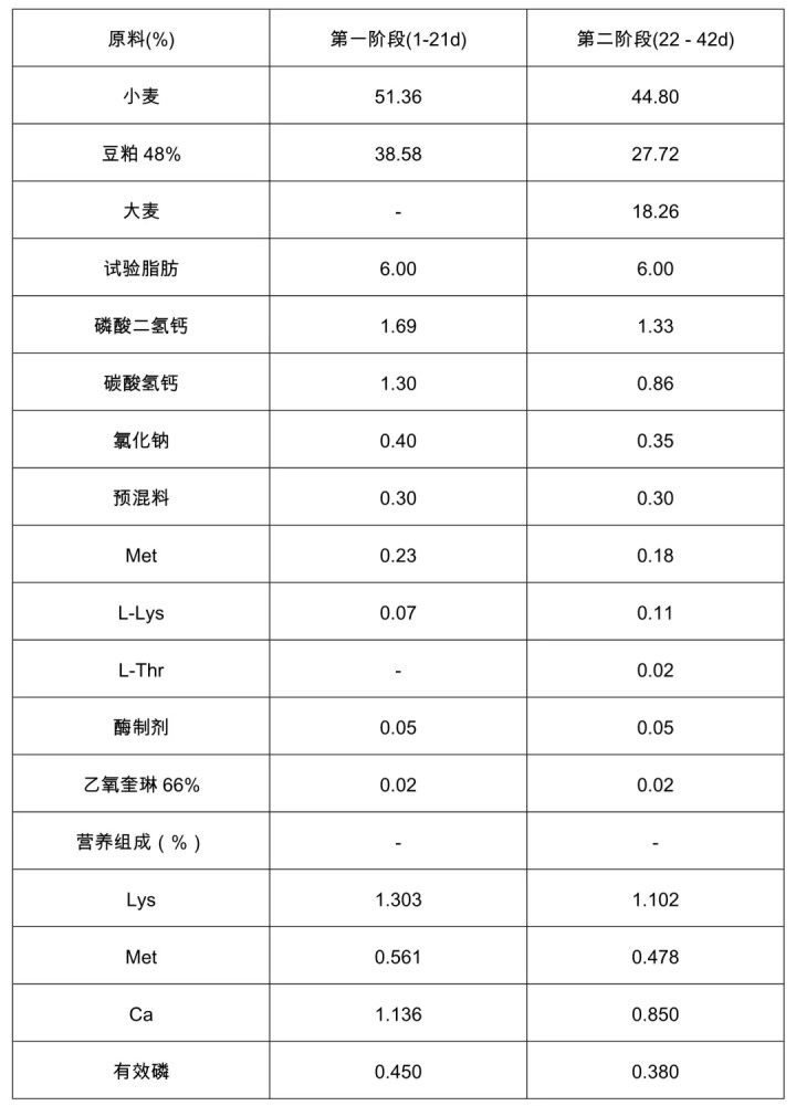 表2     試驗日糧不同階段配方及營養成分(fēn)