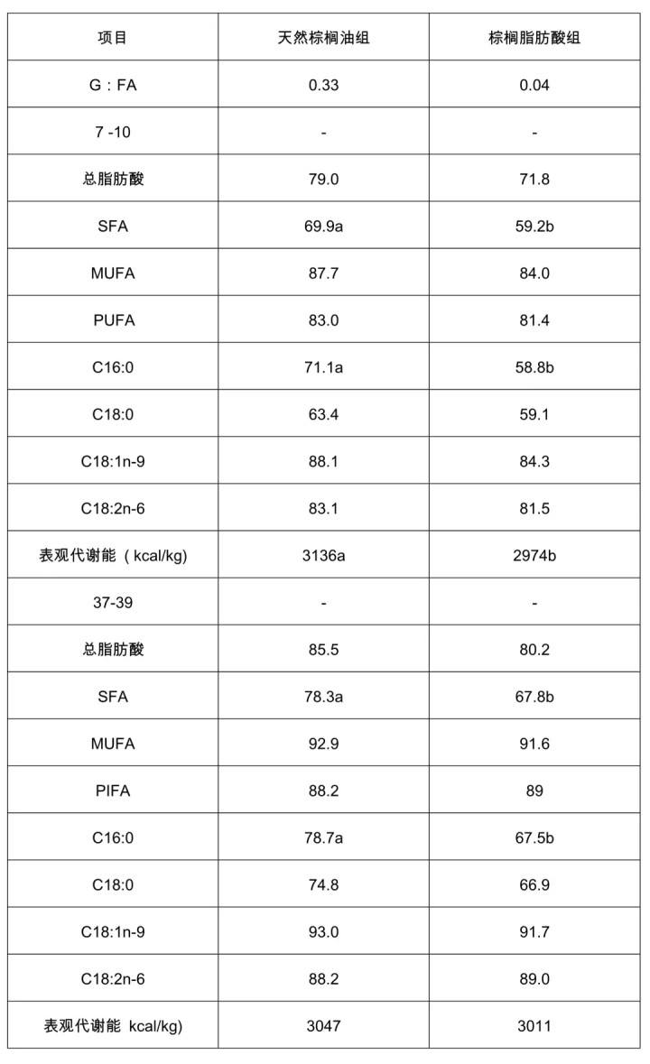 肉雞對天然棕榈脂肪在飽和脂肪酸尤其是C16:0的消化吸收顯著高于棕榈脂肪酸組,并且在育雛階段的表觀代謝(xiè)能(néng)也明顯高于棕榈脂肪酸。