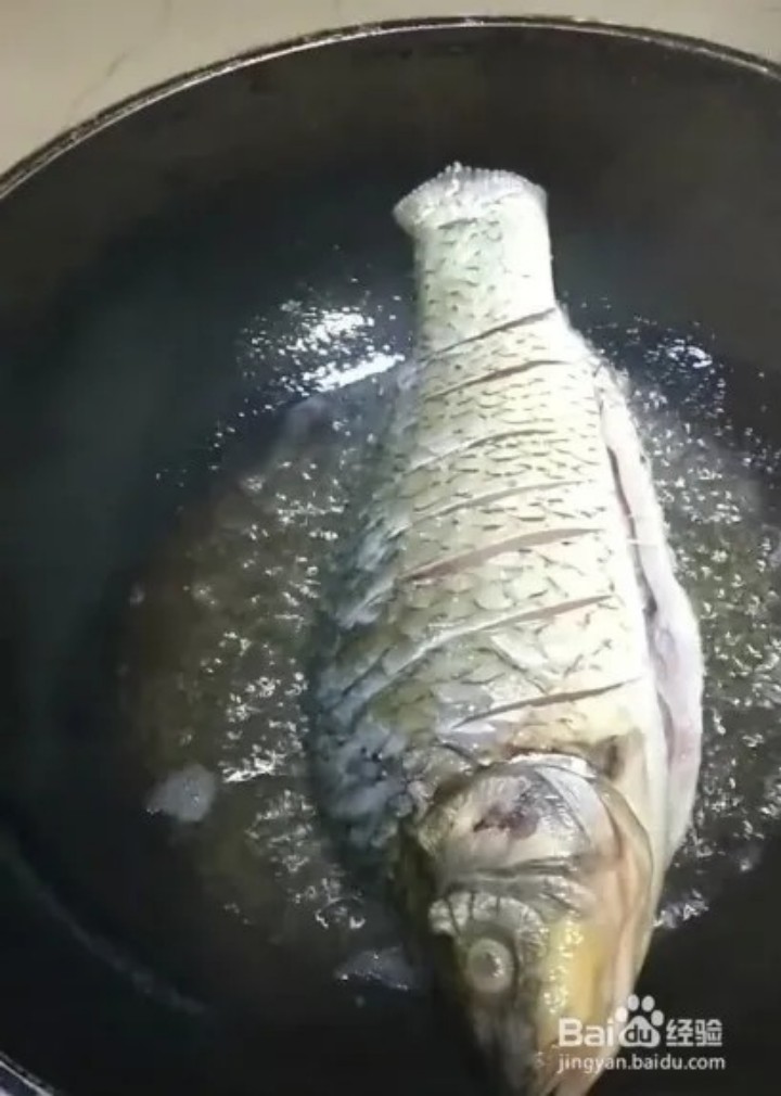 (2)油燒熱,中(zhōng)小(xiǎo)火煎魚,煎到兩面稍微變黃即可(kě);
